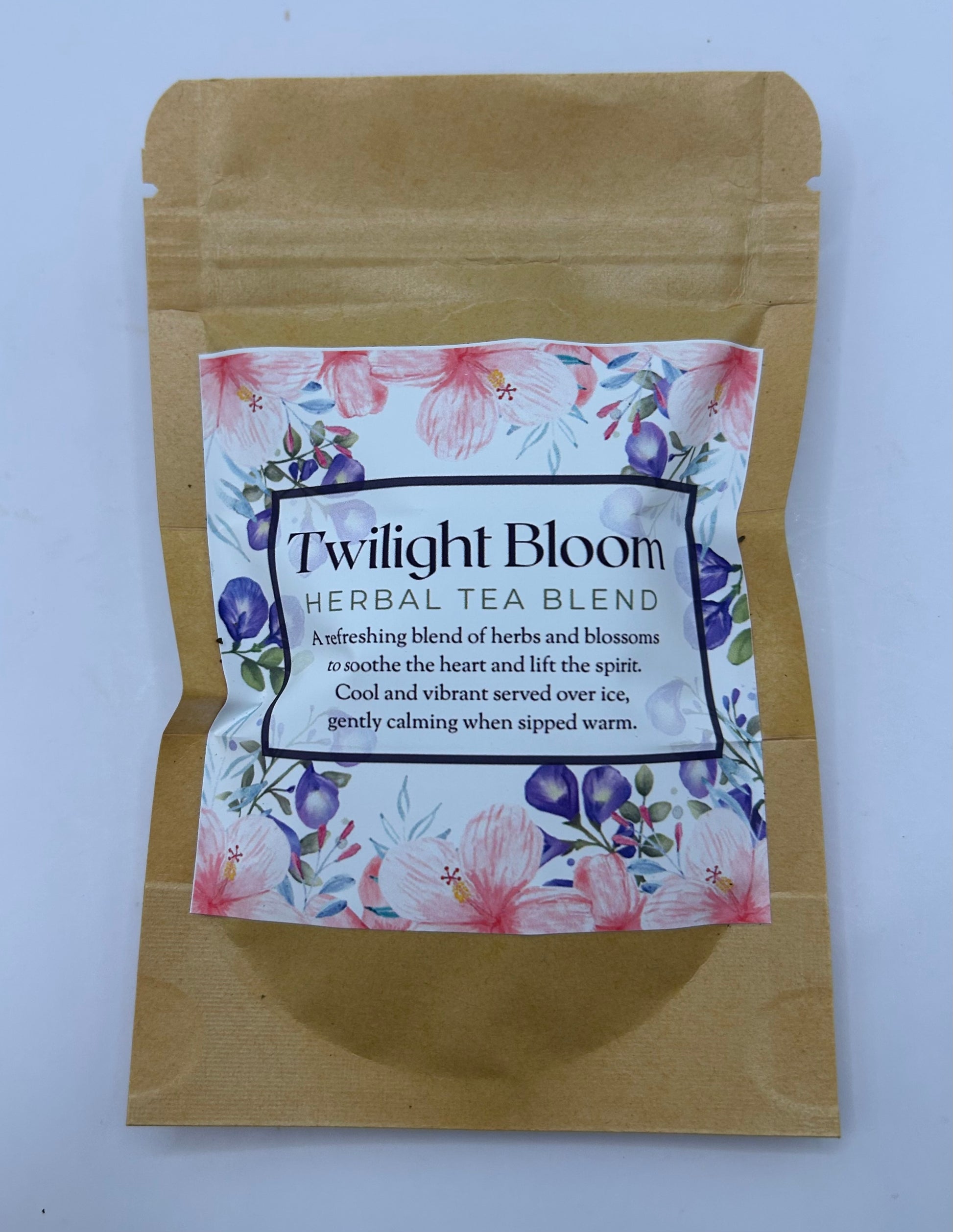 Twilight Bloom is a refreshing herbal blend crafted with vibrant blossoms and cooling botanicals, designed for dreamy evenings, sunlit afternoons, or moments of gentle wonder.